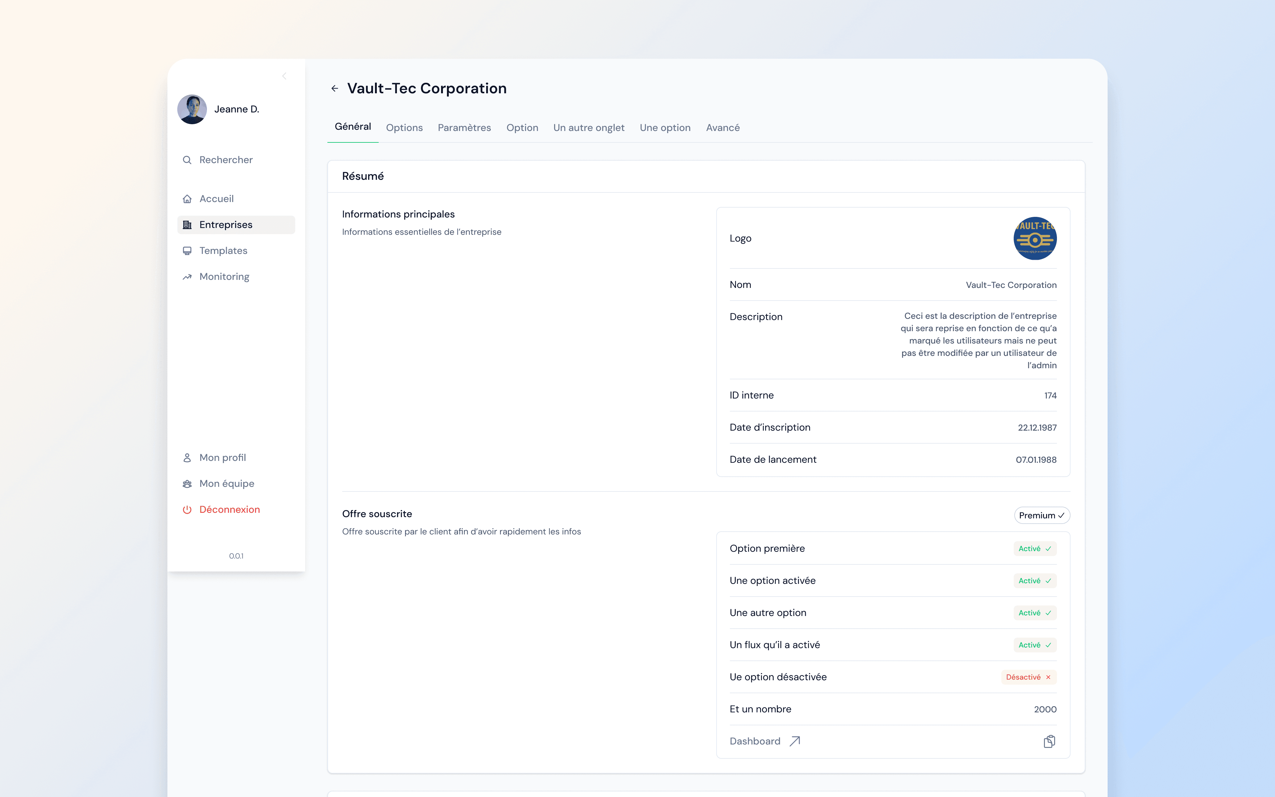 The tool is used daily by customer success managers to set up client accounts, activate or deactivate commercial options, and manage technical configurations. The sales team also relies on a demo version to showcase the product to prospects. For both audiences, the experience needed to be faster, cleaner, and more professional.